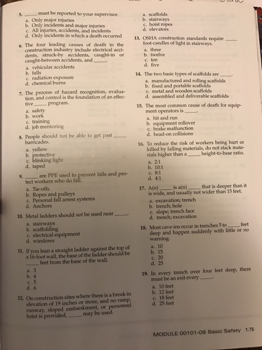 2 A 3 D 4 B 5 C 6 a 7 A 8 A 9 D 10 A 11 C 12 C 13 C 14 A 15 D Trade terms Quiz 1-34 1 Ammeter 2 Current 3 Volts V 4 Voltmeter 5 Amperes 6 Joule 7 Charge 8 Coulomb 9 Voltage 10 Watts 11 Atoms 12 Nucleus 13 Proton neutrons 14 Valence shell 15. We are also excited to provide a revised Basic Safety module that now aligns to OSHAs 10-hour program. Learn vocabulary terms and more with flashcards games and other study tools.